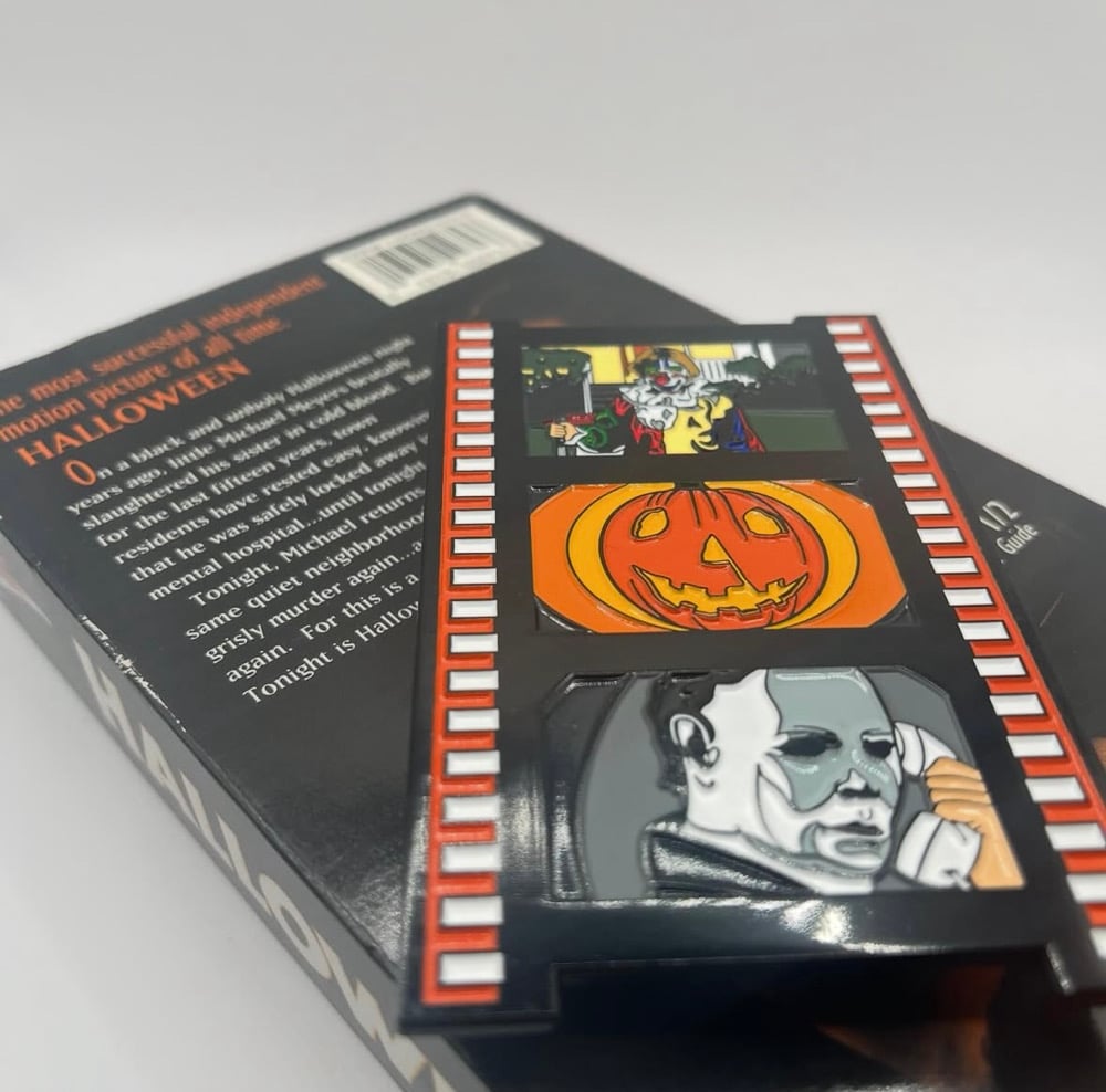 Surprise! In honor of BHP’s 2 year anniversary, here’s a very limited re-release of my Halloween (1978) film strip pin! I didn’t want to bring these back as my plan was to have this entire series be a one time release but the demand was so high for this specific pin so I had to bring it back! I heard ya loud and clear! Get him while you can!! 🖤🔥🎃